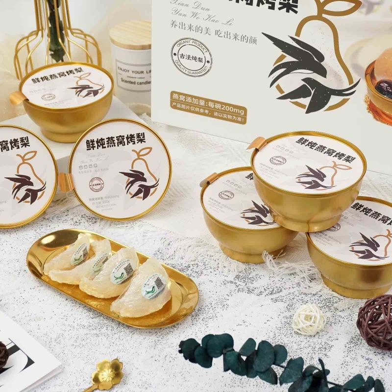 Eşsiz ve lezzetli bir hediye kutusu olan Izgara Armutlu Taze Kuş Yuvası'nı sunmaktan gurur duyuyoruz. Taze kuş yuvası özenle pişirilir ve yapışkan karamelli kavrulmuş armutlarla ustaca harmanlanır ve size doku ve lezzet açısından çifte bir ziyafet sunar. Ve zarif ambalaj, zarif tadı gösterir. Her anınıza güzellik katarak, kendinize hediye etmek veya eğlenmek için mükemmel bir seçimdir.